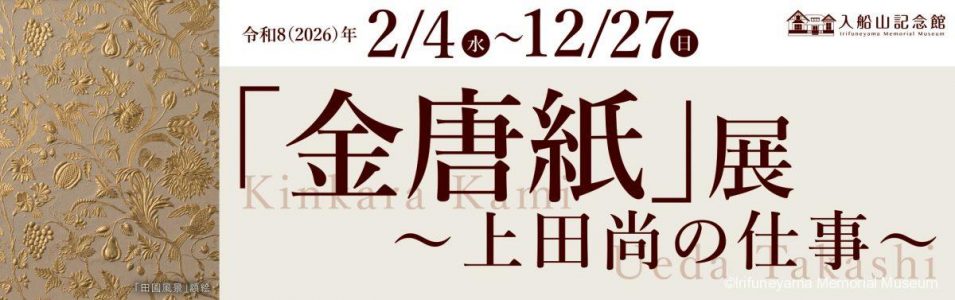お知らせ 企画展 「金唐紙」展~上田尚の仕事~ 2026年2月4日(水)~12月27日(日) Author kanrinin Date 2026年1月28日 ■企画概要 和紙をエンボス加工し金属箔と彩色をほどこした煌びやかな「金唐紙」。明治から昭和期に建築された代表的な官公庁者や資産家の邸宅の内装材として愛用されました。しかし、時代の変化とともに制作技術も消失。これを文化財修